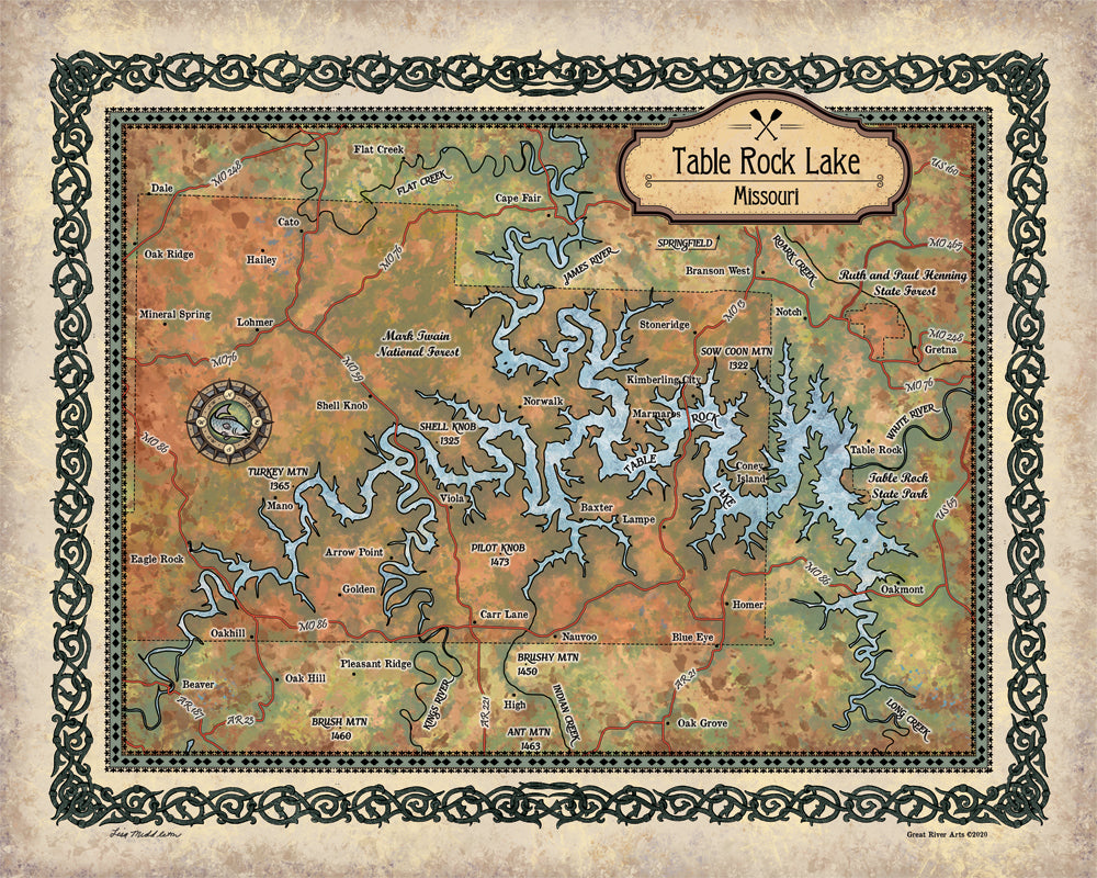 Table Rock Lake Historic Map Art Blanket Throw Soft Polar/ Silky/ Sherpa Fleece Vintage Warm Blanket For Bed Sofa Couch Gift & Travel