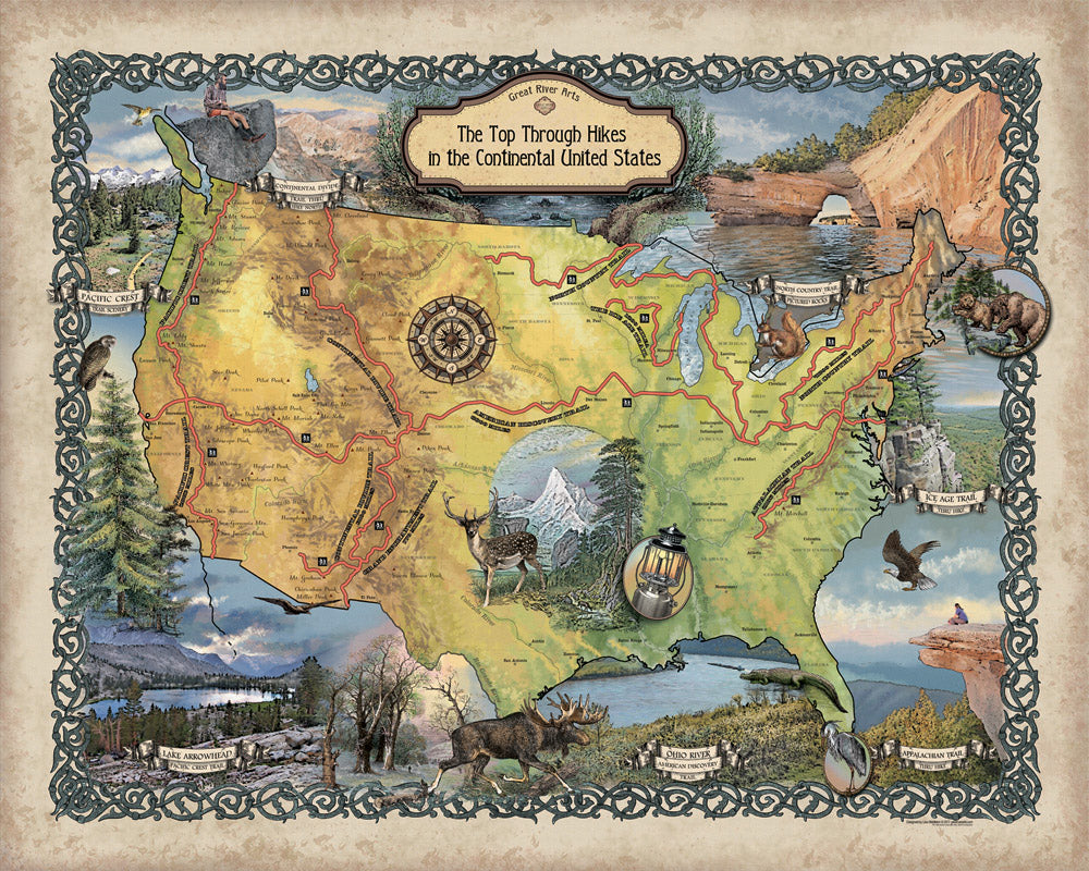 Top Through Hikes Continental US Map Art Blanket Throw Sherpa Fleece Vintage Blanket For Bed Sofa Couch Gift & Travel