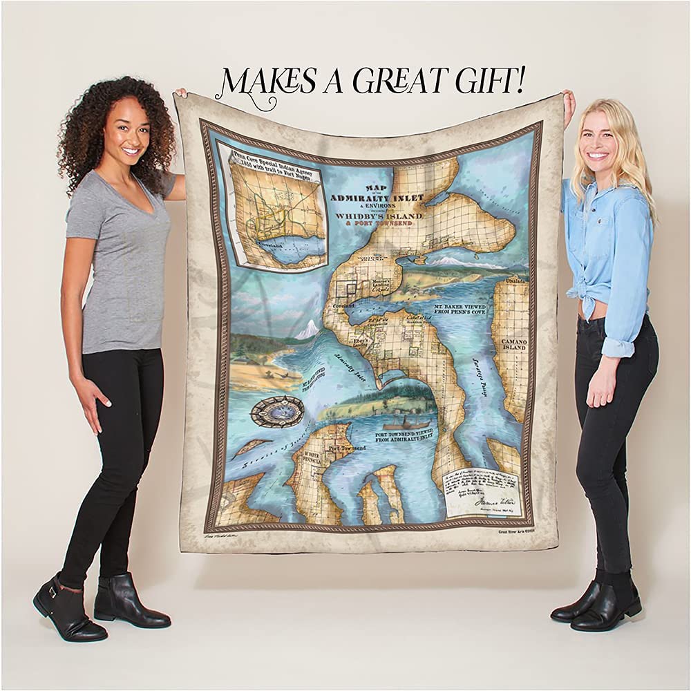 Washingn Seatte Coupeville Washington Including Whidby’s Island and Port Townsend Map Blanket Double Stitched Luxury Super Soft Blanket