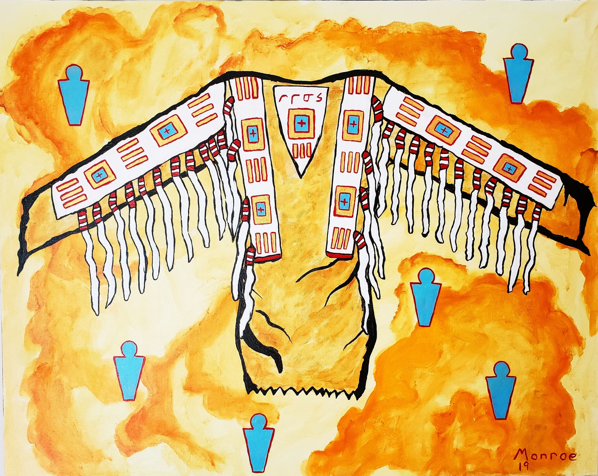 Bring in a wonderful creative art painted curtain like this ""Weasel Shirt Of Two Guns White Calf"" art painted shower curtain is the best for discerning customers who demand the best fine artwork Painted curtain for bathroom and washroom decor.