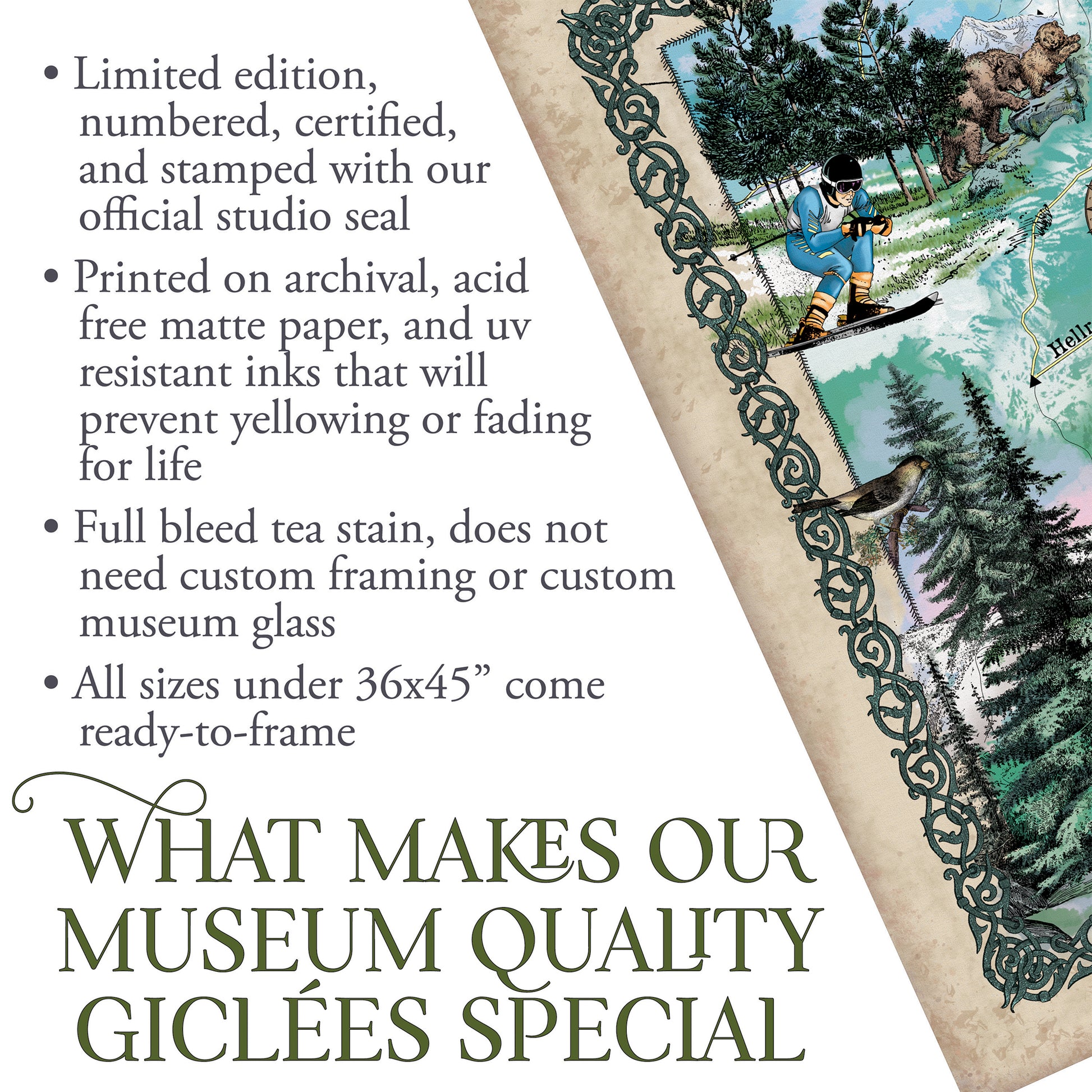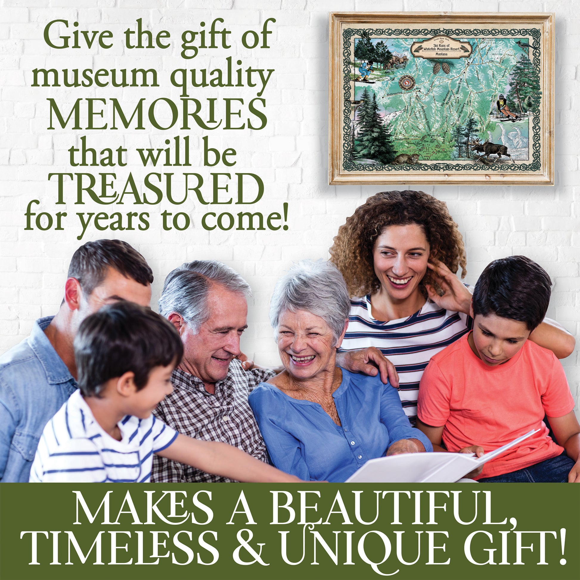 Invite this goregeous Whitefish Mountain Resort Big Mountain Ski Montana map a great skier gift winter artwork and lovely cabin decor! Carefully researched and exquisitely colorized by Lisa and her design team this map was designed just for her hometown and the hill where she learned to snowboard!