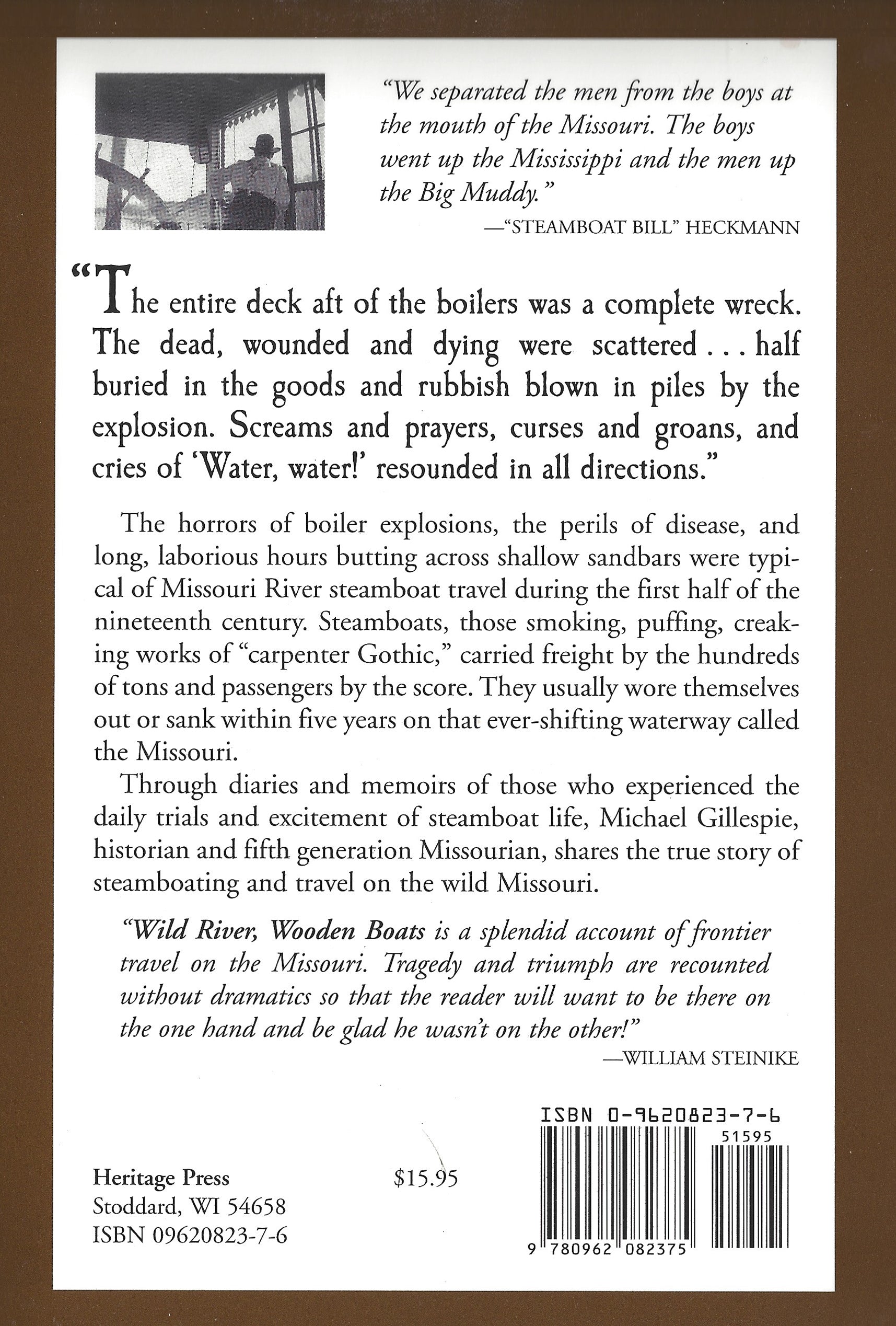 A Lively History of Steamboating... with a delightful and informative anthology of accounts from steamboat passengers, crews and journalists of the 19th century. Personal accounts of all aspects of steamboat travel from the development and construction of vessels, to steamboat races, accidents and the pleasures of Missouri River travel. Witty and well written, with meaningful editorial commentary!